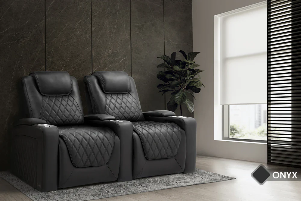 Fall into the lap of luxury with the Oslo Luxury. Lending itself to the masterful movie maven or seasoned audiophile, the Oslo will take you to new heights of enjoying your chosen entertainment. The timeless double diamond french stitching inlaid to the matte Semi-Aniline Italian Nappa Leather 20000 exudes luxury in any space it is placed into. Ensuring no detail was left behind… you can expect to experience a quiet motorized headrest, lumbar and recline. To truly make the Oslo fit into any aesthetic, 7 cycle RGB LED lights illuminate the cup holders and base of each seat. Coming equipped with an unobtrusive controller panel, USB-A and USB-C charging ports for all devices.