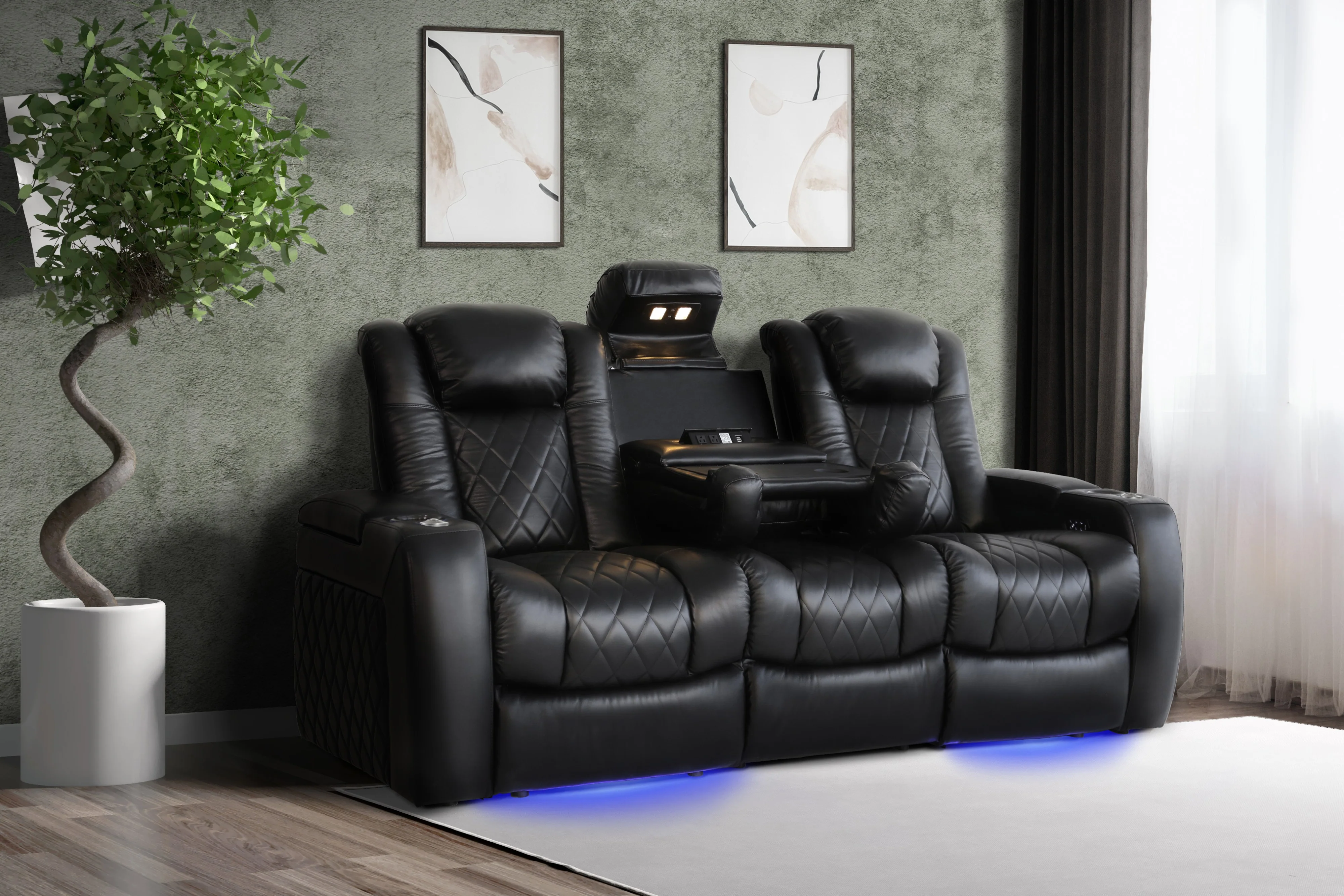 Combining elite design with peak functionality, the Tuscany Console Original offers a premier seating experience. Upholstered in rich, supple leather and paired with plush cushioning and supportive headrests, it blends comfort and style seamlessly. This configuration features a stationary center console non-recliner—an elegant hub for beverages, snacks, and favorite treats—while the left and right end seats provide full power reclining, power lumbar support, and adjustable headrests. Thoughtfully crafted to adapt beautifully to your space, the Tuscany Original stands as the ultimate statement piece for the modern home theater.